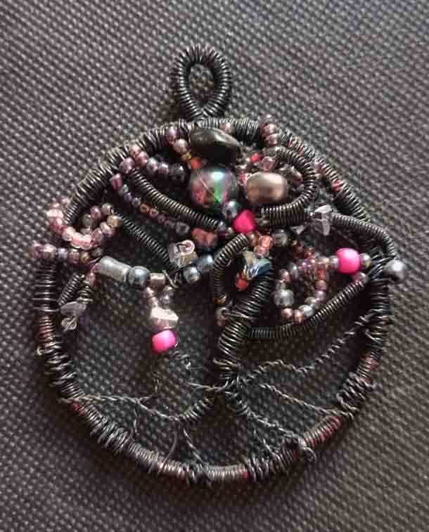 Талисман из окрашенной в чёрный цвет проволоки, с бисером в проволочной оправе, изображающей древо 9 скандинавских миров Иггдрасиль поможет Вам:
