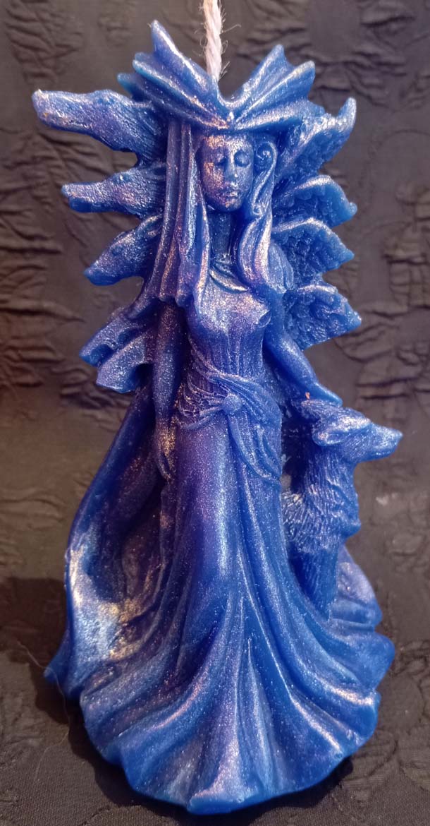 Свеча из воска без добавок, изображающая греческую богиню Гекату. Несет на себе программу усиления магических способностей и защиты, содействует проведению любых ритуалов, которым покровительствует. Дочь титанов Перса и Астерии. Её влияние распространяется на: